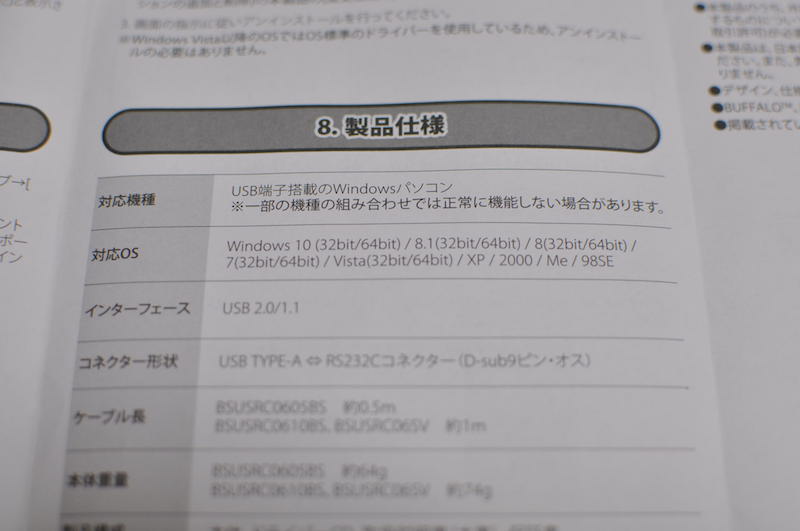 無事データ通信が終わった後、USBシリアルケーブルの取説を見たらWindows10にも対応している記述があります。ちょ、ちょ、iBUFFALOさん、パッケージにも「Win10対応」のシールを貼るなどの対応をしないと、買うのをためらう人がいるとおもいますよー。