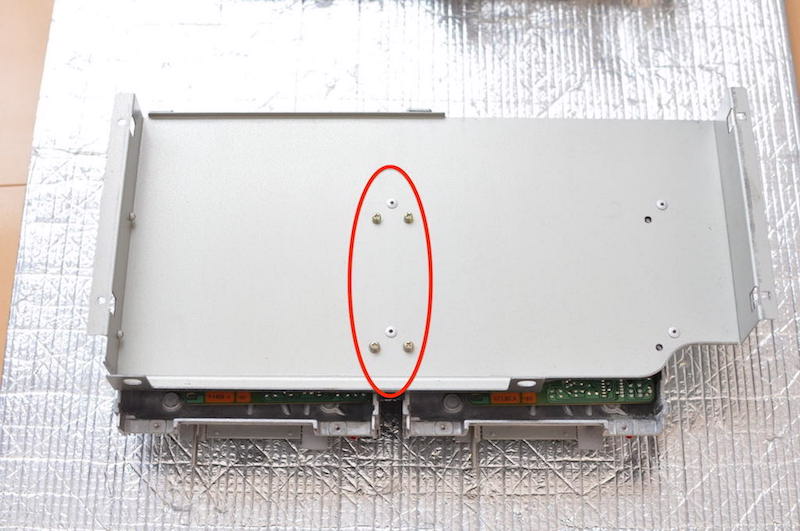 ↓ FDDユニットの土台と本体が計4本のビスで固定されているので外します。