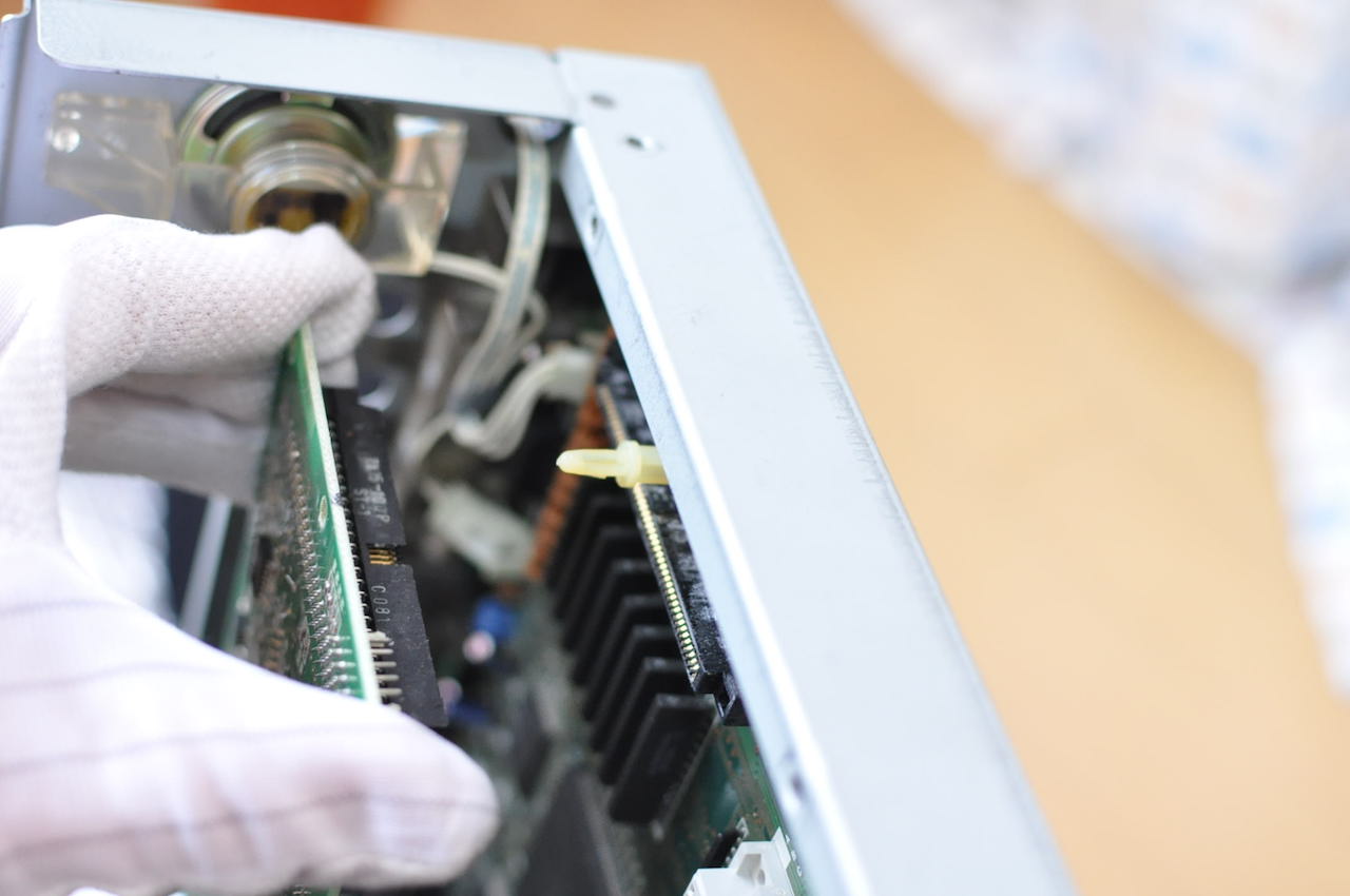 以前、稼働品のPC-98DOを手に入れたのですが、専用キーボードがなかったので、オークションサイトで「電源が入らないPC-98DO+本体」と「専用キーボード」のセットを落札。DO+のキーボードをDOにつないで動かせたのでよかったのですが、岩崎浩文氏の電子書籍を読み、起動しないPC-98DO+もアルミ電解コンデンサーを交換すれば動くかもしれない、と考えて、修理を試みました。