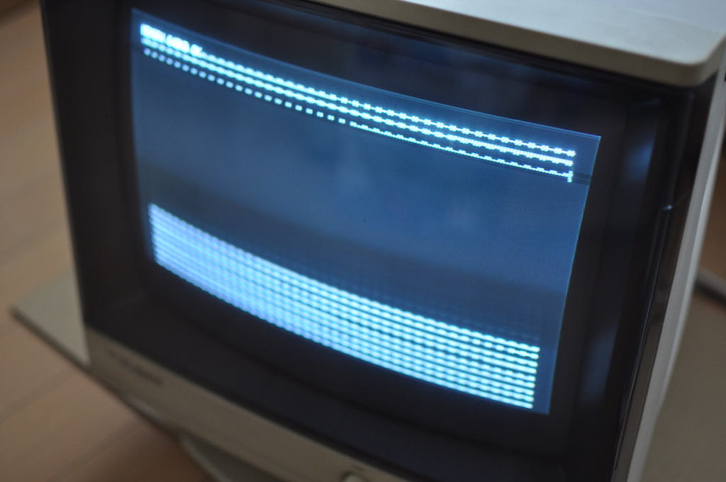 一方、98モードで起動するとおかしな網目の画像が上から下へループして表示されます。
