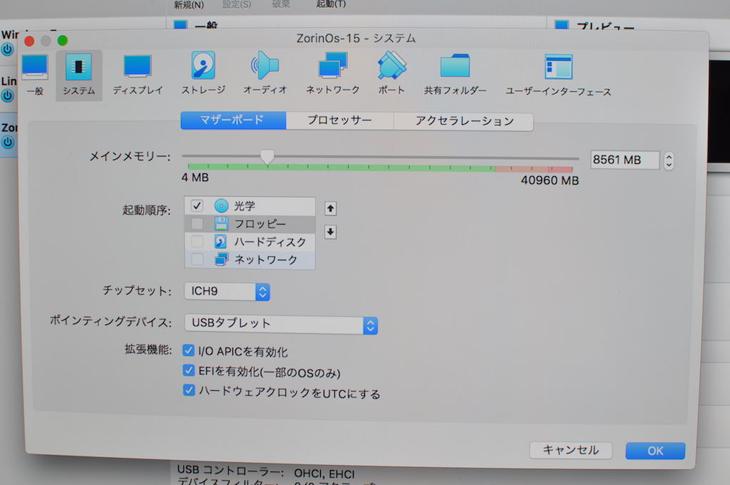 ヴァーチャルボックスでisoファイルからZorinOSを立ち上げます