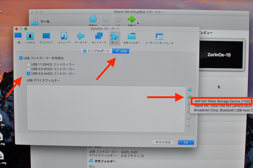 ZorinOSがライブ起動しましたら、改めてUSBメモリーをiMacのUSBポートに差し込みます。