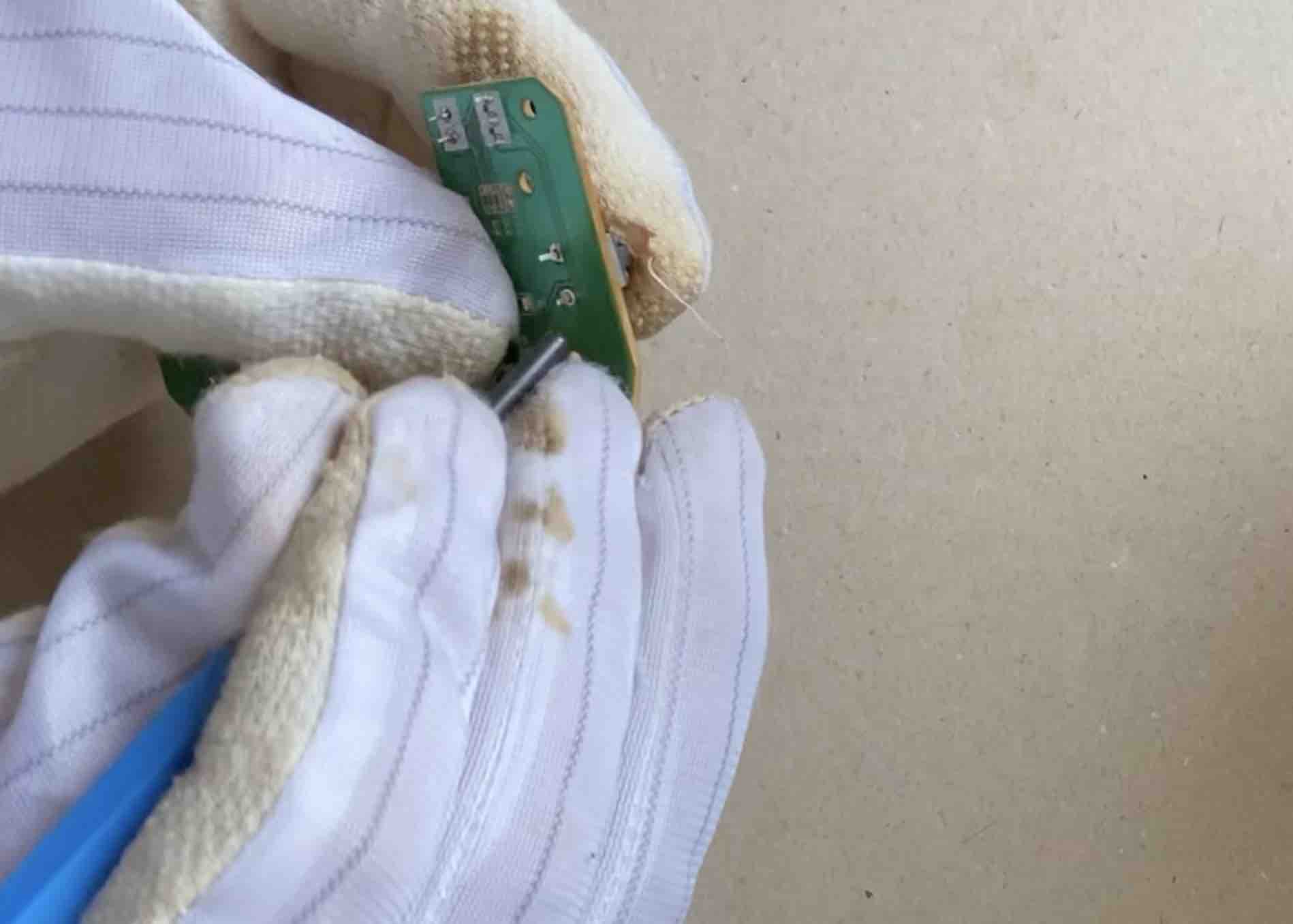 基板だけで、何も繋がっていない状態にしたら、ハンダゴテを使ってあたらしいマイクロスイッチに交換していきます。