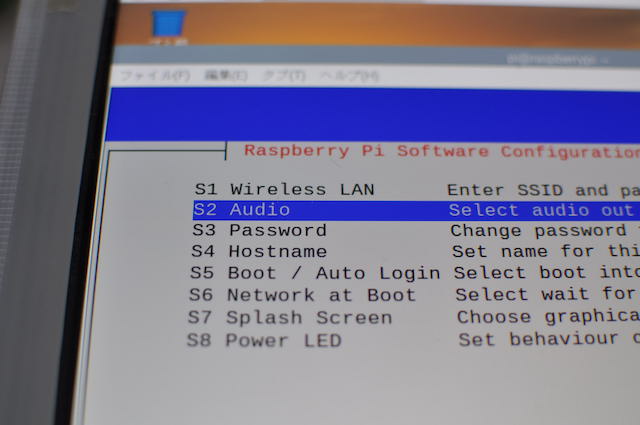 ターミナルが立ち上がりましたら、「sudo raspi-config」を打ち込みENTER。