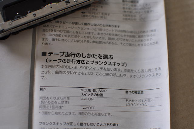 「BL SKIP」とは「ブランク・スキップ」のことだそうで、これをONにしておくことで、テープに12秒以上の空きがあると、早送りして次の曲を再生するそうです(完全な無音状態でないと作動しないこともあり)。