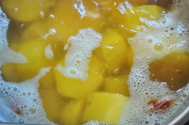 あまり湯をグラグラとさせると、さつまいもが早く煮崩れしてしまうので、湯が激しく動かないくらいの中火で、煮崩れる寸前まで煮ていきます。